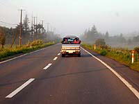 午前4時30分時、真正面に車内から見る朝陽。 |