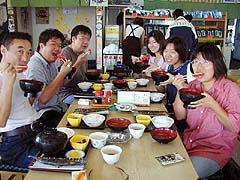 さあ!朝飯の時間だ。こんなに朝早くから食べるのも久しぶりのこと(仕事柄いつも朝は遅い)。でも全員お腹はペッコペコ!