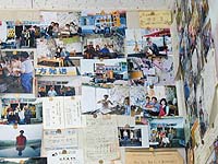 | 店内の壁・天井いたるところに貼られたお客様のスナップ写真 |