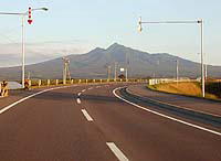 斜里川沿いのルートを走っていると正面に夕陽を浴びた斜里岳1546m(左写真)が望むことができ美しさに大感激!
