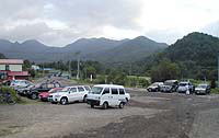 ![]() 夕方5時過ぎてもお客様が絶えない。いつの間にか駐車場(左写真)の車も増える。 無事だった大広間(右写真)で休憩されるお客様。 |