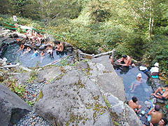 ここは、白銀荘から徒歩5分くらいのところにある無料露天風呂。野趣あふれる露天風呂は、アウトドア派を満足させること間違いなし! ![]() 右写真は山肌から湧き出している源泉(44度前後)です。 尚、詳しいデーターはこちらをクリックして下さい。 |