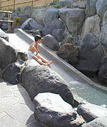 幼児でも安心して入れる浅い浴槽や水深1mもある泳げる浴槽、そして滑り台付きの浴槽などがある。 また、ゆっくり入浴できる岩風呂も別にあり、バラエティ豊富な露天風呂は北海道中探してもそうないだろう。 |