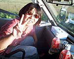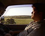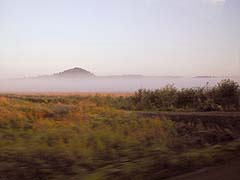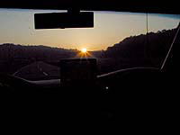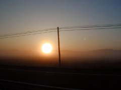 午前4時30分時、真正面に車内から見る朝陽。 |