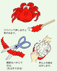 | ここでちょっとカニの上手なお召し上がり方なんぞお教えします。 |