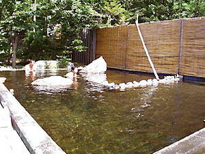 ここは、和琴温泉郷にあるのだが、名前は三香温泉という。 「ここの露天風呂は広くて開放感があり、緑に囲まれた気持ちのいい温泉で以外と穴場らしい?」という情報を元に来たキャラバン隊。 早速入浴開始だ! 入浴料は、大人400円、小人300円と安いぞ! 実は、今回初めて来る温泉でスタッフ全員期待している・・・ |