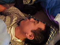 でもやっぱり年の功には勝てない!最年長のオジさんが第1号(AM3:00)、続いてユウちゃんが第2号(AM3:05)と2日ぶりに布団の中へ・・・