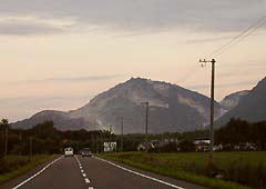 そして国道391号を経て川湯手前からは、川湯温泉のシンボルとも言える荒々しい姿の硫黄山(右写真)が見えてきた。