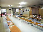 ![]() 夕方5時過ぎてもお客様が絶えない。いつの間にか駐車場(左写真)の車も増える。 無事だった大広間(右写真)で休憩されるお客様。 |