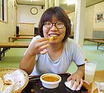 ![]() こうなれば黙っている訳がない!「こういう時こそいい湯に使って美味しいインドカリー食べないと!」といつものように頬張るさっちゃん。 「豊平峡温泉さんはコレでなくちゃ!」と満足そう(右写真) |