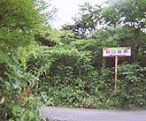 国道から一気に20度はある急な坂道を登ると舗装路面の終わり。 朝日温泉の2つ目の看板がある。 ここから左方向へさらに進む。 |