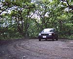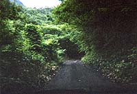 もうここはダート!悪路で道幅も車が一台分くらいと狭い。 まるで、うっそうと茂った緑の世界に 吸い込まれて行くようだ。 とにかく、秘湯ムードタップリ! |